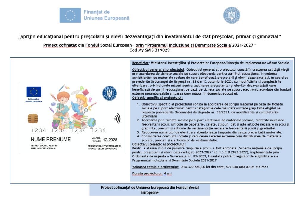 Cerere pentru acordarea sprijinului educațional sub formă de tichet social pe suport electronic pentru preşcolarii şi elevii dezavantajaţi din învăţământul de stat preşcolar, primar şi gimnazial
